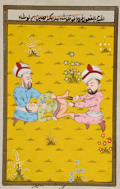 (Image from Wikimedia Commons: Circumcision of a male infant, Ottoman Empire.)